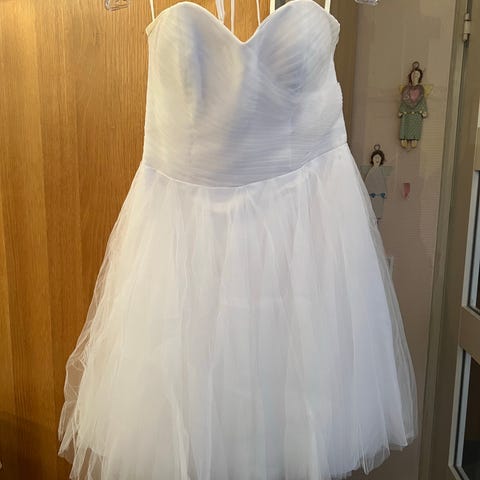 Konfirmationskjole fra Lucca. Kjolen er str. 34, men kan justeres større/mindre ved bindebånd på ryggen. Kjolen blev brugt den ene dag tilbage i 2015, og har hængt pakket ind siden.