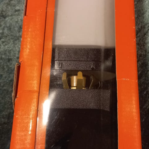 Uåbnet emballage af Louis Poulsen Lillebror Spot Lampe, sort med vægbeslag og sort ledning. Fra 1970-1980’erne.