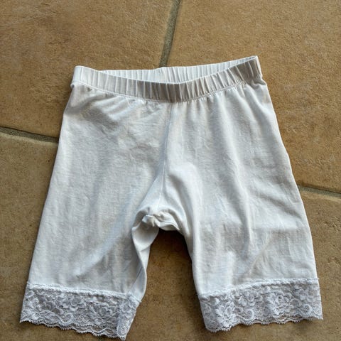 Pieces leggings/indershorts til kvinder i størrelse XS. Modellen er i sort bomuld med elastik i taljen for en behagelig pasform. Benene er knælange og afsluttes med blondekant. Velegnet som basislag under kjoler, nederdele eller tunikaer eller som lette hjemme- og hverdagsleggings.