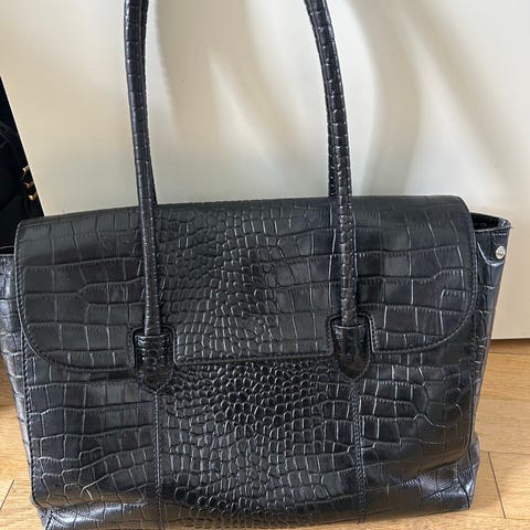 Velholdt lædertaske fra Tiger of Sweden, modellen er en birkin-type i sort slangemønster.