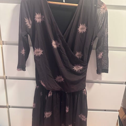 Ganni kjole i marineblå med flæseærmer og bund i str. 38 (passes også af 36). Kjolen er i perfekt stand og fra ikke-ryger hjem. Kan leveres i Skive ved lejlighed og sender gerne.