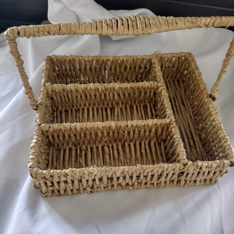 Flettet kurv til blomster/vin/andet.. med hank, 39 cm lang, 31 cm bred og 24 cm høj..