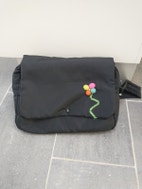 Pusletaske, Pusletaske, Pusletaske sort med unik dekorativ blomst. ( Hjemmekreeret )