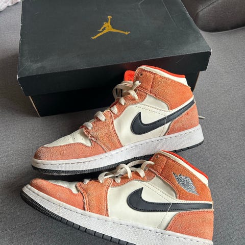 Nike Jordan sneakers i grå og hvid i størrelse 43. Modellen er en mid