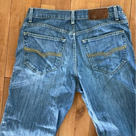 Tommy Hilfiger jeans til mænd i blå denim. Bukserne er i størrelse M med taljemål W31. Klassiske femlomme-jeans med baglomme og læderpatch med logo bagpå linningen. Fremstillet i denim-materiale, velegnet til hverdagsbrug.