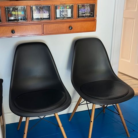 6 DSW Eames Plastic Chair stole i sort med ahorn