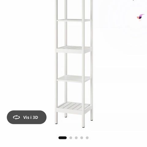 Hvid Reol. OK stand, har brugsspor. Håndklædeholder sat fast med dobbeltklæbende, kan fjernes. Højde kan finjusteres på fødderne. 172 høj 42 bred 37 dyb