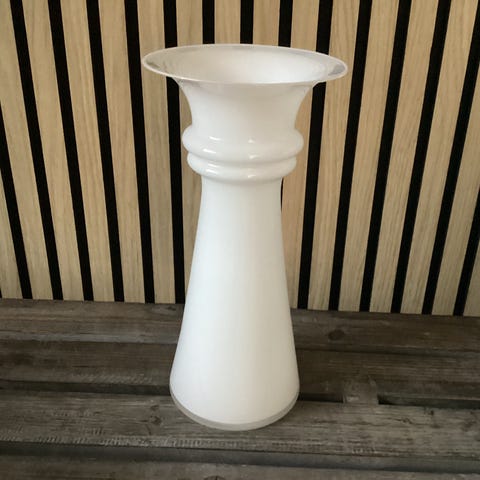 Vase, Holmegaard, Flot hvid vase med 3 riller, designet af Michael Bang i serien Harmony.