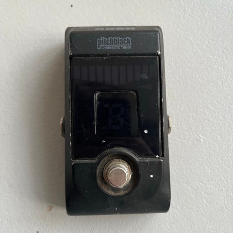 Den har været monteret på en pedal board, og har derfor noget velcrobånd på bagsiden.