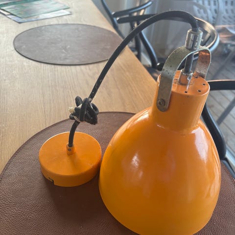 Pendel, Loftslampe med en speciel lang pære.. Lampen er Ø 18 cm, og 30 cm. I højden. Farven er sort. Pæren er samme længde som lampen altså ca. 30 cm. Den har nogle brugsspor og en mindre bule (kan ses på billederne). Lampen er en speciel type, som man bestemt ikke ser hver dag. Sælges for 500 kr.