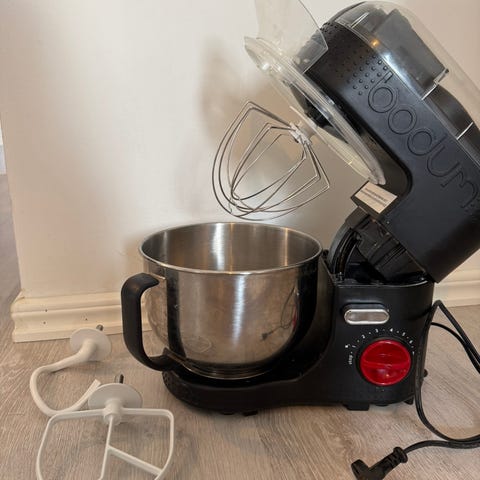 Standmixer, der er ubrugt og virker helt fint, leveres med tre forskellige mixere. 😊