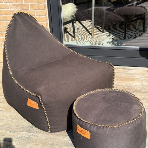 Fatboy sækkestol i brun farve. Klassisk stor sækkestol med kraftigt yderstof og metaløjer i hjørnerne til fastgørelse eller ophæng. Velegnet til afslapning og siddemøbel i stue, værelse eller opholdsrum. Kan bruges af både børn og voksne afhængigt af behov og indretning.