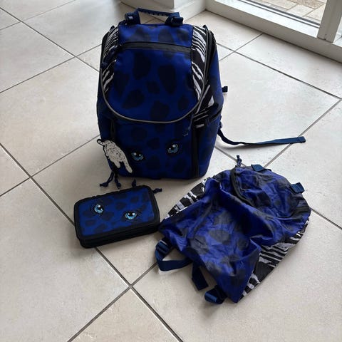 Java skoletaske, idrltstaske og penalhus. Idrltstaske kan sættes fast på skoletasken.