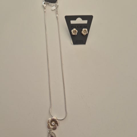 Smukt smykkesæt fra Pilgrim med armbånd og øreringe med skinnende sten, kun brugt 1 gang.