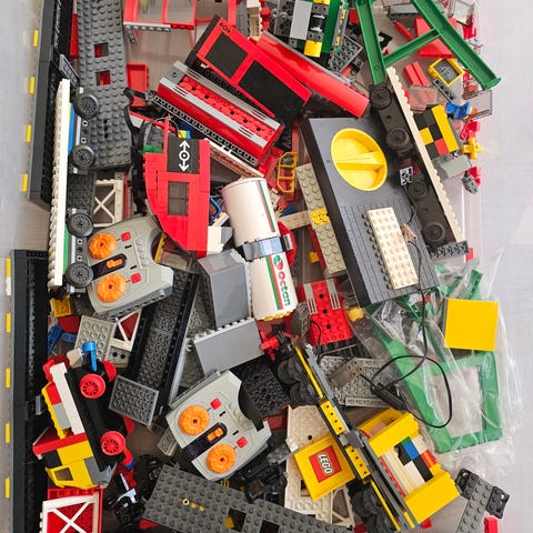 Lego tog, station og skinner + ekstra skinner sælges.