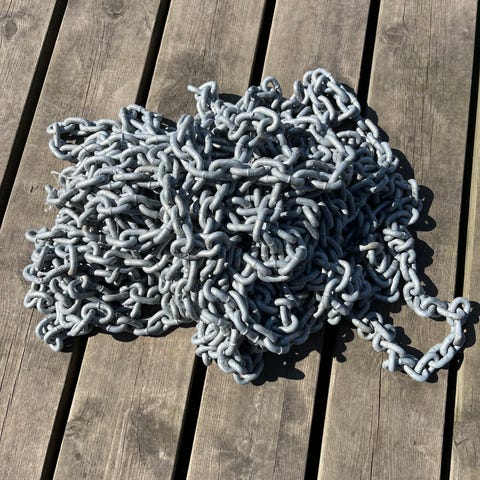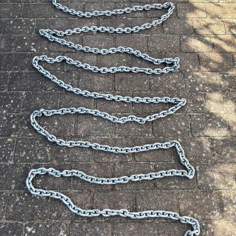 70 meter 10 mm ankerkæde til båd. Leveres i en trækasse på Ishøj Havn. Der er afstandsmarkeringer, så man ved, hvor meget kæde man har ude.