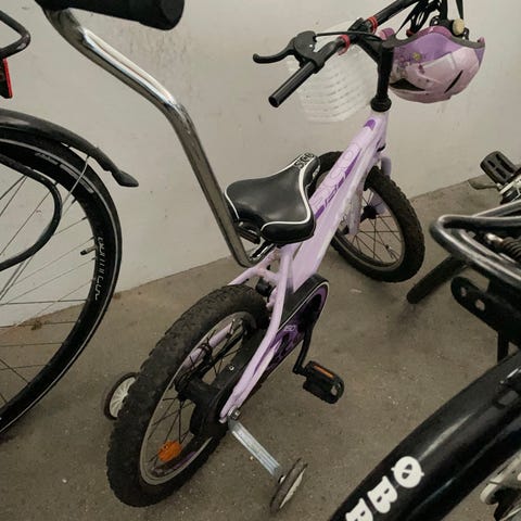 Super fin og velfungerende begyndercykel i en flot lilla farve.