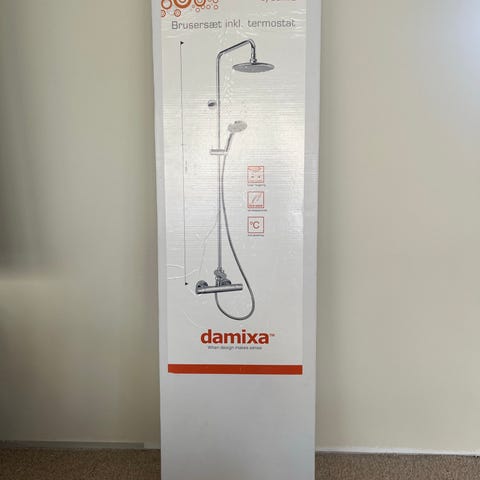 Damixa Hilina shower system uden armatur. Rundt øvre brusehoved og håndbruser samt stang. Leveres i original emballage med monteringsvejledning. Se Damixa Hilina for specs.