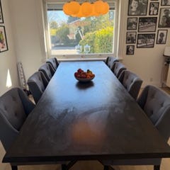 Ved middagsselskab kan der side 8 i alt med 2 i hver bordende.