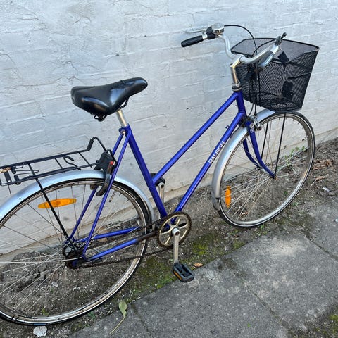 Cyklen har patina og brugsspor, som passer til alderen, men fungerer fint og er klar til daglig brug.