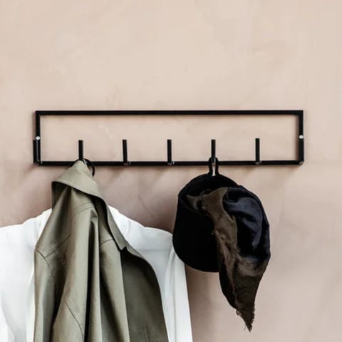 Flot triptrap knagerække med hylde, samt tilhørende kasser og bøjler.