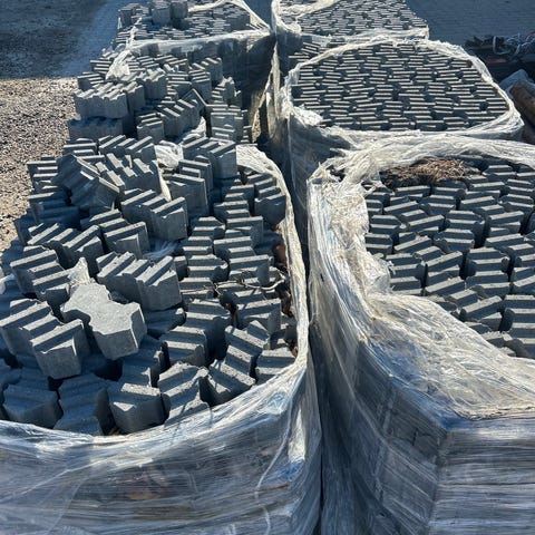 Chaussesten i mørk portugisisk granit.