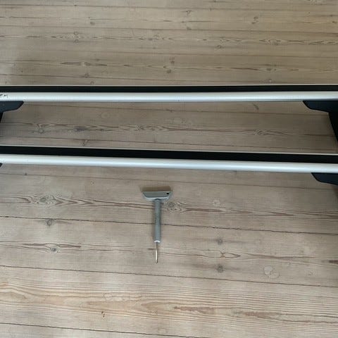 BMW tagbøjler i aluminium i sølvfarve. Bøjlerne monteres på bilens tag og kan anvendes som basisbærer til transportudstyr som tagbokse eller cykelholdere.