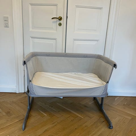 Babysengen er eleverbar så den kan tilpasses alle sengehøjder. Sider kan åbnes til amning mv. Kan afhentes på Amager!