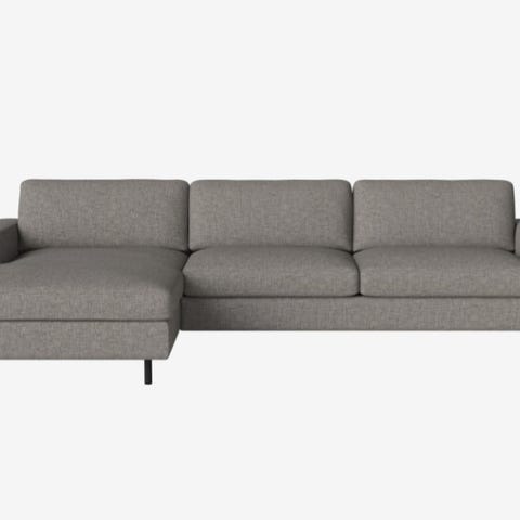 Fineste lys grå chaiselong sofa i blødt og slidstærkt kvalitets stof. Betræk på puder og hynder kan aftages og vaskes i maskine.