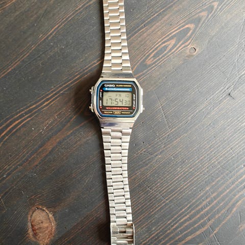 Casio A164 W ur. Water resistant og stainless steel. Skal have nyt batteri.