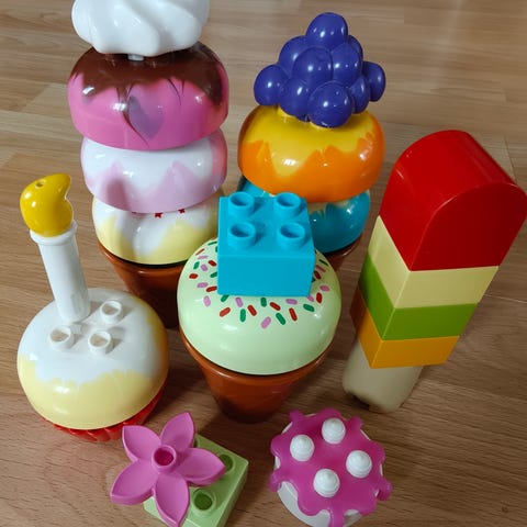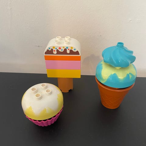 Sjovt og farverigt sæt, hvor man kan bygge is og vafler med forskellige toppings.