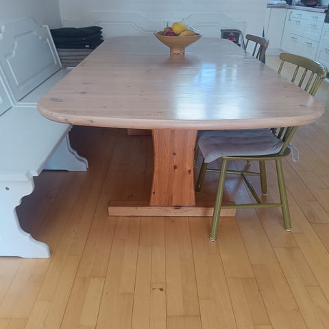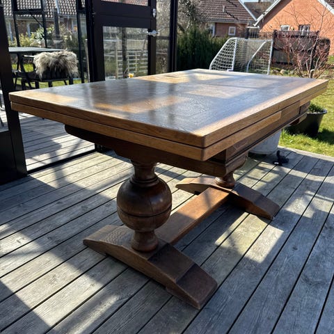 Et antikt spisebord af egetræ. Ikke særlig stort. Perfekt til mindre lejlighed eller værelse. Mål er ca. Står i Aarhus - Frederiksbjerg