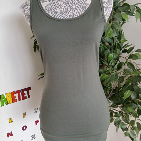 378². Gul top med rund halsudskæring og brede stropper. Toppen har en løs pasform foroven og en tætsiddende pasform forneden, der skaber en flatterende silhuet. Den er velegnet til både afslappede og mere festlige lejligheder.