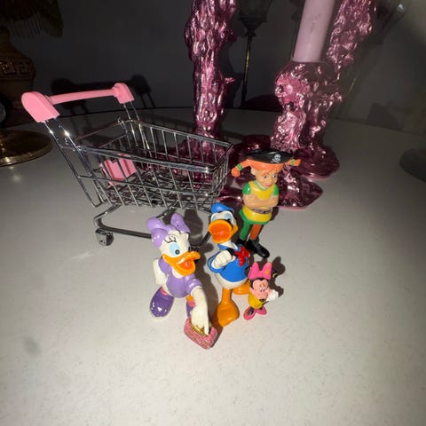 Disney Lilo & Stitch blandet lot med figurer, paraply og accessories i blå og lilla nuancer. Sættet omfatter blandt andet små figurer, en børneparaply med Lilo & Stitch motiv, en kasket samt forskellige små accessories med samme tema. Velegnet til børn eller samlere af Lilo & Stitch merchandise.