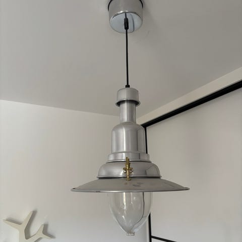 Smukkeste maritime klemlampe fra Cabin Frigast med håndværksmæssig kvalitet i særklasse. Fin stand med brugsspor. Udstrakt længde 40 cm. Skærmdiameter 9 cm. Ledning 1,7 m. Ledpære medfølger - Fast pris - Sender gerne