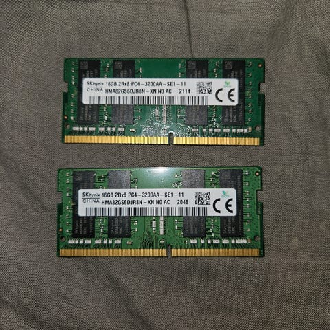Sælger denne SK Hynix 4GB DDR4 RAM-blok. Det er en stabil og hurtig hukommelse, der passer perfekt til opgradering af en bærbar computer eller som reservedel.