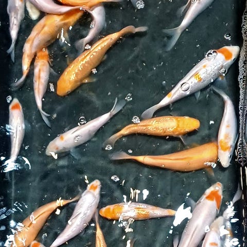 2 stk. platinum butterfly koi skal videre. Ca. 20-25 cm. 100kr stk.