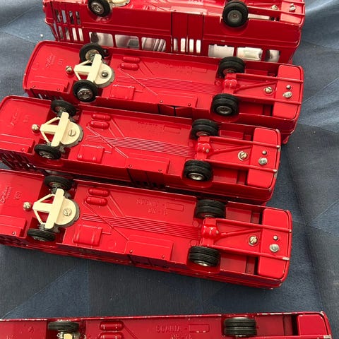 Modelbus, Tekno Mercedes Bus 0302 950, Vintage (1969) Rød og Hvid Bus Model Diecast Danmark. Mangler rat.