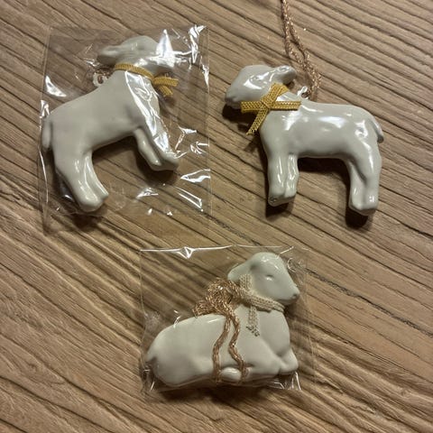 Maileg påskeophæng i metal med kaniner og blomster motiv. Sættet består af flere små ophæng til påske, herunder liggende og siddende kaniner samt et bladformet ophæng med blomstermotiv. Ophængene er udført i en lys nuance med detaljer i blandt andet guld og rosa og leveres med snor til ophæng. Velegnet som dekoration på påskebordet, grene eller andre steder i hjemmet i påsken.