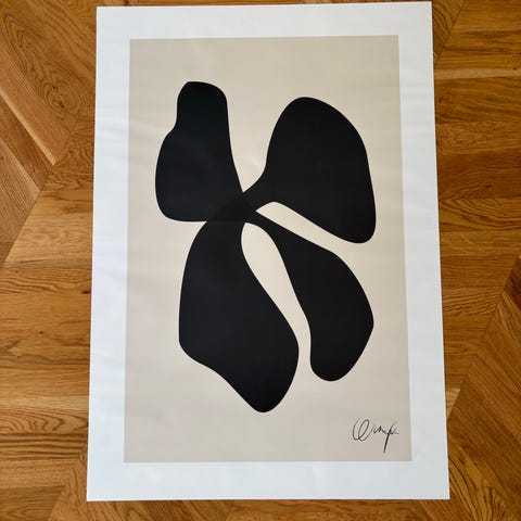 Plakat 70x100 med abstrakt figurmotiv orange og beige