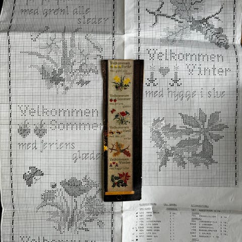 Mønster, HOLLY HOBBIE - Klokkestreng, DMC / Lanarte (Holland) - Design nr. 15408 - Klokkestreng > 13,5 x 95 cm. - 2 mønsterark + Garnfarvekode - Broderisting - Instruktion (4 sprog) - I fin stand! - (Vintage Broderimønster)