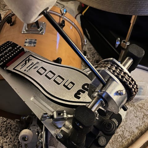 Kanon DW 5000 dobbelt stortrommepedal til trommesæt. Pedalen har rødt stel og sort fodplade med DW 5000-logo. Velegnet til trommeslagere, der ønsker en dobbeltpedal-løsning til stortromme. Justerbar mekanik og kædetræk giver mulighed for individuel tilpasning af spillefølelsen.