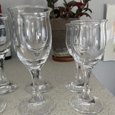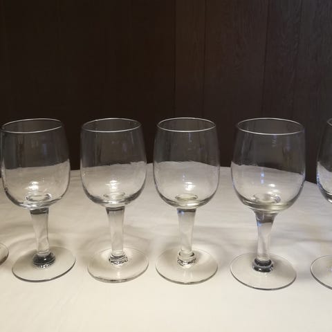 Antik mundblæst snapseglas Don Carlos. 5 stk samlet