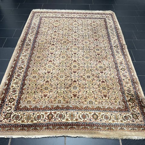 Håndvævet orientalsk tæppe fra Indien, størrelse 310 x 250 cm, uld på bomuld, vægt ca. 38 kg, produceret i midten af det 20. århundrede, i god stand med alders- og brugsspor. Klik på den blå "gå til varen" knap, for at købe eller byde på denne vare. Den samlede pris vil blive vist inden du afgiver dit bud.