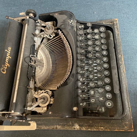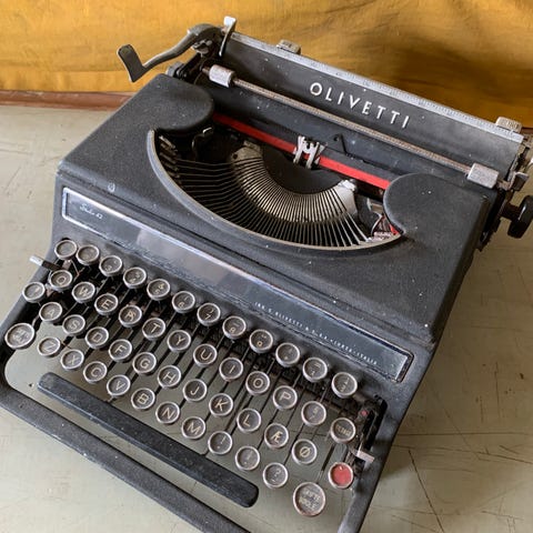 Skrivemaskine, Olivetti studie 45, Skrivemaskine, vintage rejseskrivemaskine, i tyrkis fra olivetti model studio 45 medfølgende kuffert også i tyrkis. Designet af Ettore Sottsass .