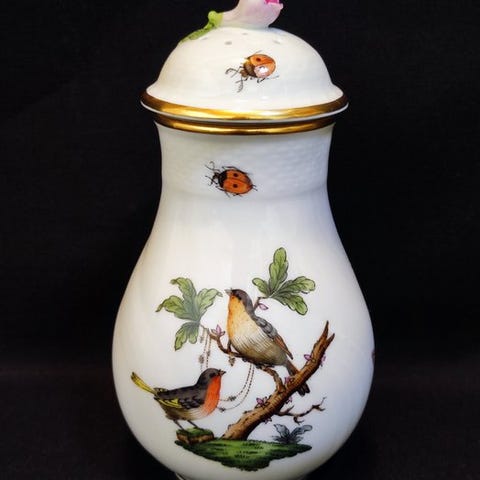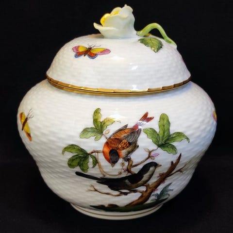 Fadet er i fremragende stand, mærket med blå Herend-skjoldmærke og nummereret, ingen skår, ingen revner og ingen reparationer, se venligst billederne, da de er en del af beskrivelsen.