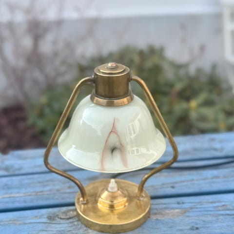 Anden bordlampe, Art deco bordlampe, Smuk lampe fra 40erne i messing og gl smukt glas. 20 cm høj.