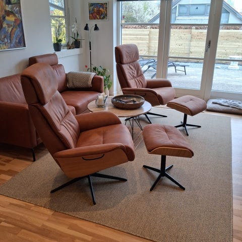 Brunstad Delta lænestole med skammel - prisen er for begge stole