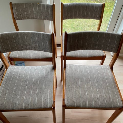 4 vinrøde spisebordsstole i bøg, brugt men i fin stand