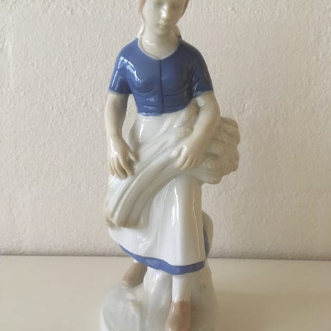 Vintage porcelæns figur af kvinde med neg i favnen. 24 cm høj og og stemplet med krone i bund. Tysk.